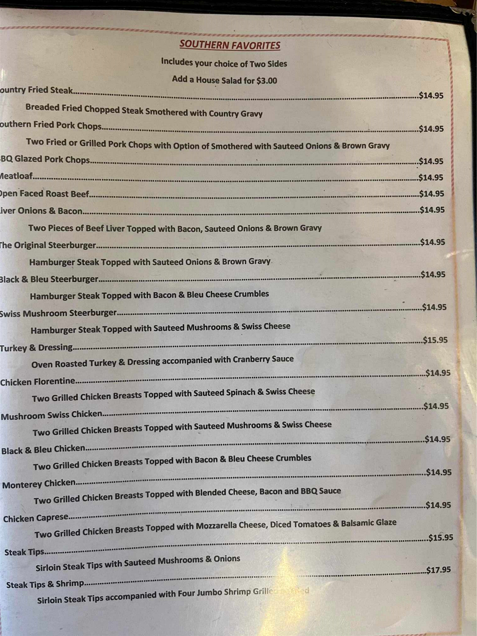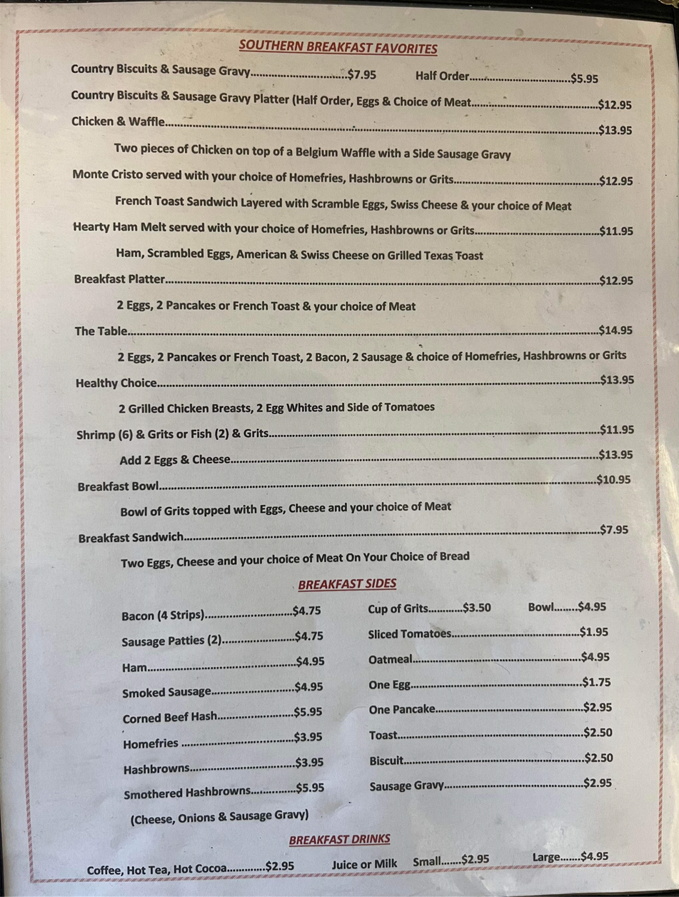 Menu for Southern Table Restaurant - Southern Table Restaurant